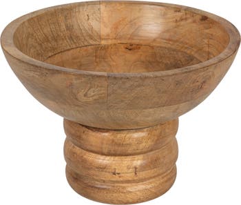- A beautifully carved footed bowl featuring a natural mango wood finish