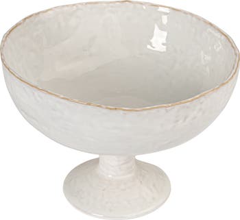 - An elegant footed bowl with an organic shape and a reactive crackle glaze finish in white