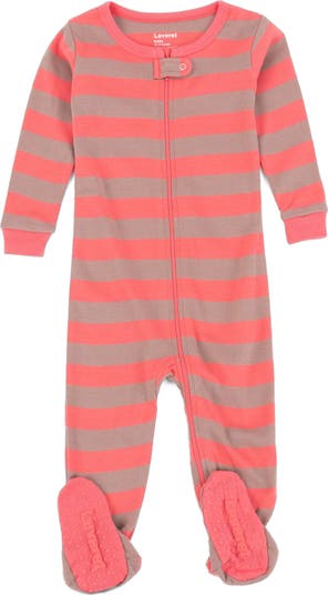 These Baby Cotton Footed Pajamas feature a cozy design in a variety of solid colors, classic stripes, and fun tie-dye styles. Made with 100% cotton, they’re soft, breathable, and snug-fitting to meet child safety standards. Each pajama includes a full-length zipper with a secure top snap tab for easy dressing, plus enclosed feet with non-slip grips to keep Baby safe while they play and sleep. A tagless label ensures itch-free comfort, while the colorful assortment makes them perfect for holiday gifts, family photos, or everyday wear. Each print is sold separately so you can collect your favorites. Machine washable for practical, everyday care.