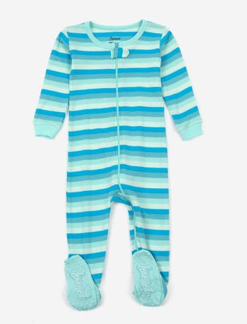 Keep bedtime bright and cheerful with Leveret Footed Striped Cotton Matching Family Pajamas for babies. These cozy one-piece sleepers feature playful stripe designs in a variety of colors, Blue & White, Orca Stripes, Unicorn Stripes, Colorful Boys, Colorful Girls, Berry & Chime, Purple & Dark Gray, Purple & Denim, Purple & Navy, and Red & Pink, perfect for everyday comfort or coordinated family looks. Made from soft, breathable 100% cotton, each sleeper meets snug-fit child sleepwear safety standards for peace of mind. A full-length zipper with a top snap tab makes changing quick and easy, while enclosed feet with non-slip soles keep little toes warm and secure. Tagless labels ensure irritation-free comfort for sensitive skin. Each style is sold separately so families can mix and match sizes and colors across all ages. Durable and machine-washable, these Matching Family Pajamas are Great for a Gift and cozy Holiday Pajamas that pair beautifully with your Christmas Pajamas collection.