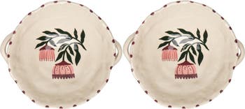 Elevate everyday rituals with our footed Venus bowl, where captivating flowers guard precious keepsakes and daily essentials. An undulating surface, organically shaped edges, and a glossy finish provide a textural and handmade appeal. Made from 25% recycled stoneware. Fantastical florals burgeon with folk art flair, while rich ochre and burgundy frolic with soft pink and green in this design from Danica Studio.