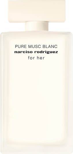 Fragrance story: Discover for her PURE MUSC BLANC eau de parfum intense, the bright new fragrance for women by Narciso Rodriguez. A powerful embrace envelops the for her woman as each spray caresses the skin. Bold yet intimate, this new scent unveils a luminous intensity wrapped in a clean softness. An intense chypre white floral fragrance for women. For this vegan chypre white floral fragrance, perfumer Sonia Constant has amplified the iconic Narciso Rodriguez heart of musc signature. Top notes of luminous jasmine meet the immaculate freshness of a magnetic clean accord as the scent touches your skin. The middle notes reveal the voluptuousness of an augmented heart of musc, wrapping you in a creamy cocoon. At the base, a comforting blend of cedarwood and vanilla creates a lingering intensity, for a pure yet sensual fragrance trail.