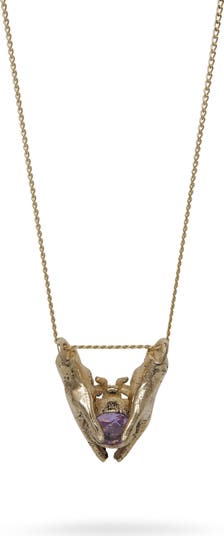 9ct Gold pendant holding a round pink sapphire gift, presented on a 20 inch chain