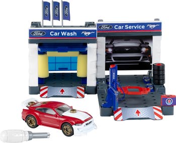 - EASY ASSEMBLY: Simply snap a screwdriver and assemble the car workshop including the lifting platform - the Mustang can roll in for service.