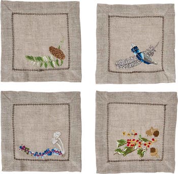 An ode to Earth's natural beauty and Mother Nature’s abundant gifts, these delicately hand-embroidered napkins transport everyone from a meal at your table to a charming walk in the woods.