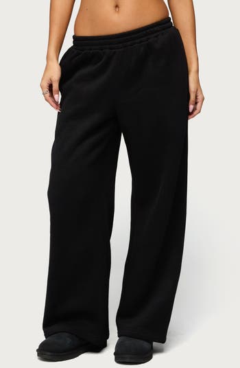 Keep it casual in these fleecy sweatpants sporting an elastic waist, logo stitching and relaxed, full-length flared legs.