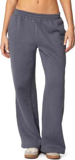 Keep it casual in these fleecy sweatpants sporting an elastic waist, relaxed straight legs and an appliqué in back.