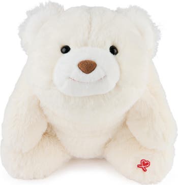 Made from a supersoft plush fabric in an easy-to-cuddle crescent shape, this stuffed bear with a heart embroidered on one paw will welcome hugs from everyone no matter their age.