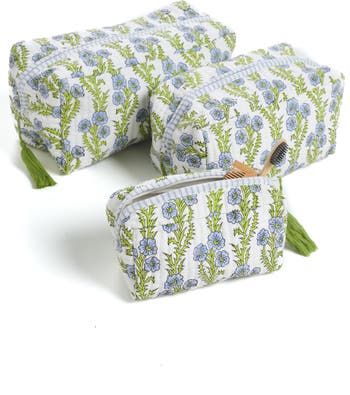 Forget-Me-Not Blockprint Makeup Bag - Set of 3