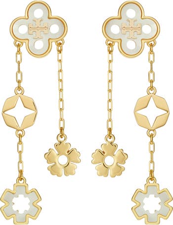 Add memorable style to everyday ensembles with these polished drop earrings featuring three versions of the iconic wildflower that symbolizes enduring love.