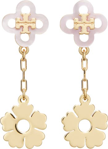 Brand-signature motifs shape these swinging drop earrings gleaming with a polished finish.