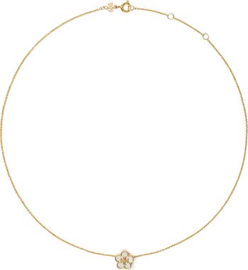 Add a dash of signature elegance to your look with a delicate chain necklace anchored by an mother-of-pearl pendant bearing the iconic double-T logo.