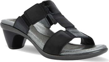 An anatomic cork footbed supports every step you take in a stylish sandal designed with elasticized insets at the straps and walkable block heel.