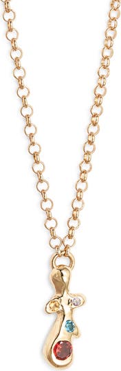 A stone-studded angel charm graces this necklace plated in fine metal.