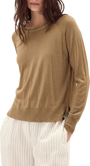 Raglan sleeves add structure to this fine-gauge sweater knit in a soft cotton-modal blend and anchored by fine ribbing.