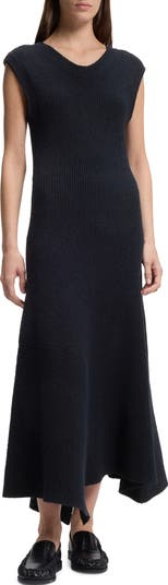 Allover ribbing textures this woolly longline sweater-dress framed by cap sleeves and a flared skirt.