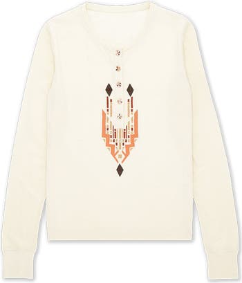 The CORALIE is an iconic Serafino sweater from the Fortela brand, inspired by Jane Birkin. In this version, it is enriched by a cotton thread embroidery with a Navajo design, which coordinates perfectly with the Spring/Summer 2025 collection. Made of 100% cotton, this Serafino sweater embraces the taste of the brand thanks to the elegant embroidery that runs along the buttoning. The two-hole buttons are in mother of pearl, while the last button, in metal with turquoise paste, recalls the art of Navajo jewelry, adding a distinctive and refined touch. The slim fit of the CORALIE is designed to delicately follow the lines of the body without being too tight, ensuring a perfect balance between comfort and style. This Serafino sweater is ideal to be combined with the JANE trousers and the FRUTATE Friulane shoes with studs and turquoise, creating a sophisticated and refined look. On the back, the iconic Fortela stitching, made with orange thread, represents the brand's philosophy: each piece is created to last and age together with the wearer, carrying with it a piece of history revisited through the inspiration and study of Alessandro Squarzi.