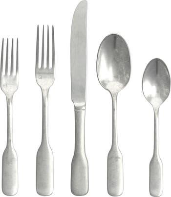 A well-worn finish perfectly ages this time, refined place setting cast with a balanced heft from dishwasher-safe stainless steel for years of enjoyment.