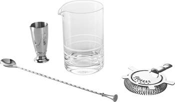 Create professional-level cocktails right at home with this four-piece set designed by World Champion bartender Charles Joly. The stainless steel tools and Tritan® crystal mixing glass are dishwasher safe, making cleanup a breeze.