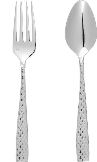 Textural facets add contemporary intrigue to an elegant serving set crafted from high quality stainless steel with a mirrored finish.