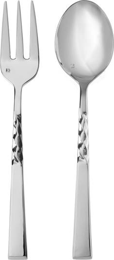 Delicate spirals and square handles add contemporary intrigue to an elegant serving set crafted from high quality stainless steel with a mirrored finish.