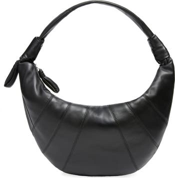 A fresh addition to Lemaire’s Croissant line, this crescent‑shaped bag inspired by the classic French pastry is crafted from topstitched panels of smooth Spanish lambskin. A knotted shoulder strap highlights the softly slouched silhouette.