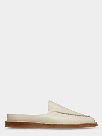 Combining everyday comfort with a smart aesthetic, the Fosko slippers – here in bone-colored grained leather – are finished with a leather-injected sole for extra grip.
