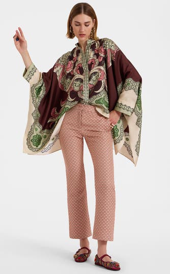 A J.J. staple year-round, our gorgeous silk Foulard Shirt is like a walking fine art piece. Part shirt, part poncho, it’s crafted in fluid Italian-made silk in a chic waterfall style fit that is flattering on all shapes and sizes. Draping off the arms with a Korean collar and buttons down the front, it’s a beautiful canvas for our hand-placed prints, including this ultra-chic, Renaissance-inspired print. Style with black pants for the boardroom, unbutton over a swimsuit for the beach bar.