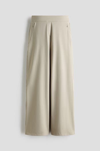 Trousers in a soft fabric with four-way stretch that offers complete flexibility, shape and fluid motion in every direction. Relaxed fit with an elasticated waistband, fake fly, decorative front pockets and wide legs. Functional Essentials is a curated selection of pieces that incorporates comfort and performance into everyday wear.