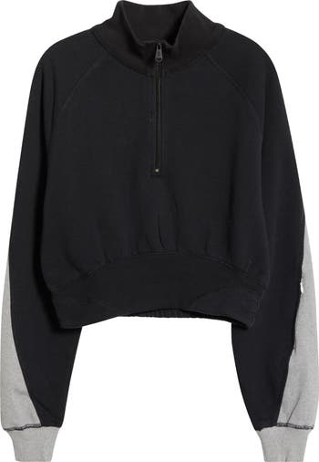 Work out or simply hang out in the supreme comfort of this cotton-blend pullover cut a boxy, cropped silhouette.