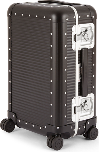 Made in Italy, the Bank suitcases are inspired by the olden day trunks revised in a modern way. The aluminum shells, combined with the special Butterfly locks, guarantee protection and resistance to the elements. The dual wheels ensure ease of transport and the interior with compartment dividers and leather details provide a perfect organization of the content.