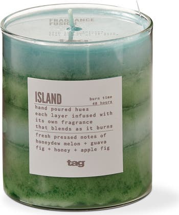 Entertain your senses with our fragrance fusion candles. Each layer features a different scent to reinvigorate your senses as the candle burns, yet each blends flawlessly with the scent before it. Paraffin wax is hand poured into a glass hurricane and finished with a cotton wick. The layers feature fragrance notes of honeydew melon, guava fig, honey, and apple fig that create that exotic and fun feeling of an island getaway. keep wick trimmed to 1/4 inch at all times. the wick should be trimmed every 2 hours of burn time. simply extinguish the flame, let the candle come to room temperature, and trim the wick to 1/4 of inch before relighting. keep vessels upright at all times.