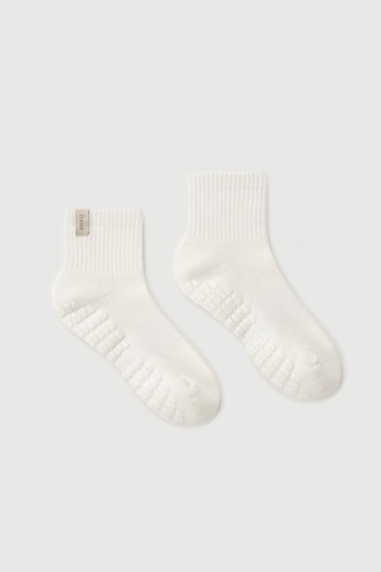 This soft, breathable grip sock features compression arch support and our proprietary non-slip design that's made to stick — making it the perfect studio staple for pilates, yoga, and barre. Our organic cotton blend incorporates silver ions, which provide natural antimicrobial properties that help reduce odors and bacterial growth. It's also been combed with brushes to remove the shorter, weaker fibers, leaving it softer and more durable than traditional cotton.