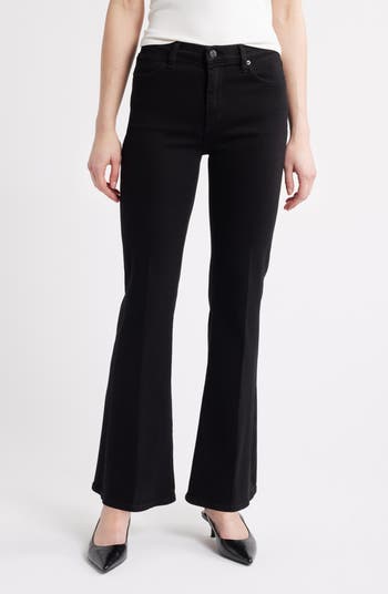 Steal the show in these vintage-inspired, full-length flare jeans updated for today with a high waist and superstretchy black-wash denim.