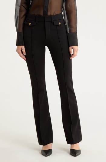 A pintuck pleat and wide legs add style points to pair of desk-to-dinner pants rendered in a neutral shade.