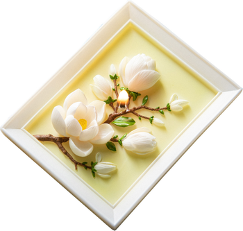 A framed magnolia candle designed to capture a bloom in still form. Hand-sculpted petals and leaves are set in relief within a frame-inspired design, creating a botanical display that feels both sculptural and refined. When lit, it casts a soft glow while doubling as a decorative object, adding an elegant touch to shelves, desks or living spaces—and makes a thoughtful gift for art and nature lovers alike.