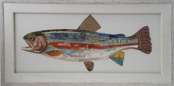 - A captivating shadow box wall décor featuring a vibrant fish print framed in wood and glass