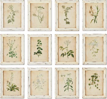 This set of framed wild flower prints is a lovely way to fill your wall with nature's wild beauties. Hang together or arrange in small vignettes for a cohesive look throughout your home.