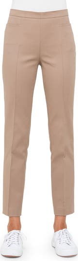 Hip-tracing seams and sharply creased slim-cut legs modernize a pair of tailored pants cut from a rich cotton blend.