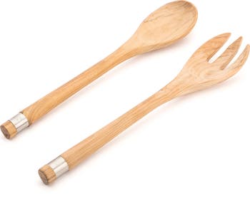 France Olive Wood Handcrafted 2 Piece Salad Server Set