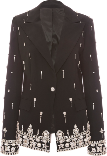 Where power dressing meets unapologetic glam. The Francesca Blazer features a sleek, structured silhouette with a tailored fit, elevated by hand-embroidered crystal and diamond embellishments woven along the sleeves and borders. Designed for those who command attention while getting things done, this statement blazer brings confidence, polish, and just the right amount of sparkle to any look.