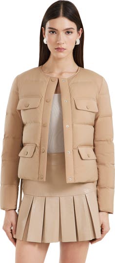 The FRANCESCA by RUDSAK is a lightweight quilted puffer jacket that redefines sophisticated style in outerwear. Insulated with RDS-certified down and feather fill, it provides warmth without bulk. Its cropped, collarless design and thin removable vegan leather belt create a sleek, cinched silhouette, while flap-front pockets and a snap button closure add functional elegance. Perfect for layering, the FRANCESCA effortlessly combines practicality and refined design for a polished look on cooler days.