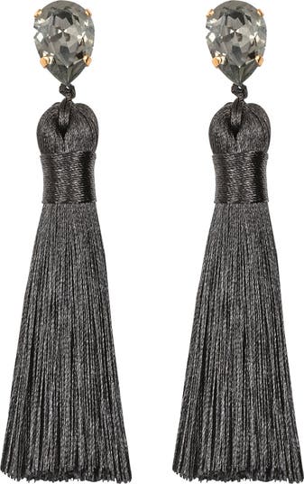 Dial up the drama of your ensembles with these shoulder-grazing drop earrings comprised of silk tassels that nod to art deco interiors.