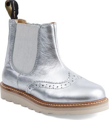 Heritage brogue detailing refines the look of a classic Chelsea boot designed with modern ease in mind. An elasticated side gusset pairs with a discreet inside zip for effortless on-and-off wear, while a sleek silhouette keeps the profile timeless and versatile. Set on a signature lightweight sole for cushioned all-day comfort, this polished staple moves seamlessly from school days to special outings. A distinguished essential that delivers enduring style with a contemporary edge.