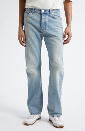 It's all in the finishing with these classic straight leg jeans done in a heavy bleached wash with whitened sandblasting and whiskering to round out the lived-in look.