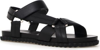 Tonal stitching and geometric hardware create a sporty aesthetic on a leather sandal grounded by a contoured footbed and a durable rubber sole with knurled edges.