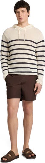 Knit from breathable linen yarns, this hooded sweater offers relaxed comfort with functional detailing.