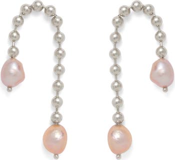 Lustrous pearls anchor elegantly handcrafted ball-chain drop earrings plated in gleaming 14-karat gold or sterling silver.