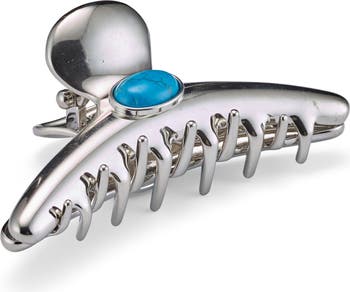 A turquoise-dyed jade stone and a silvery finish add rich color to this claw clip that securely keeps your updo in place.