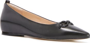 Gleaming chain-link hardware enriches the instep of a leather flat fashioned with a pointy toe for contemporary appeal.